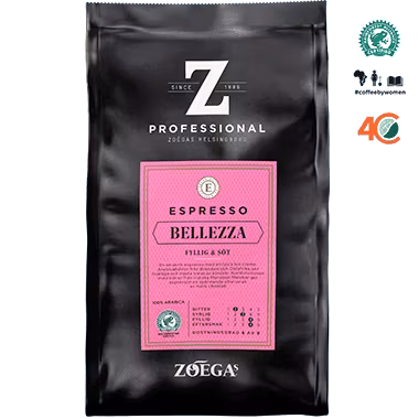 ZOÉGAS Professional Bellezza är en smakrik espresso med en tjock len crema. Arabicabönor från Brasilien och Östafrika ger fruktiga och mjuka toner av körsbär. Kombinationen med bönor från Indiska Monsoon Malalbar ger espresson en spännande eftersmak av mörk choklad.