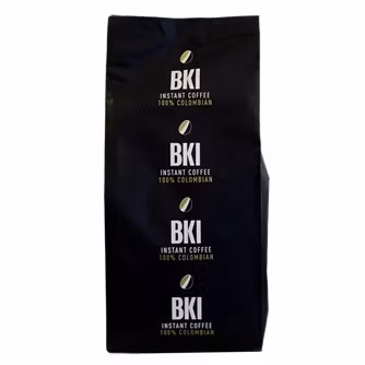 Frystorkat kaffe framställt av 100% Colombianska Arabica bönor som har mellanrostats. Kaffet är fylligt med en behaglig rund och mjuk eftersmak. Med BKI Instant kaffe får du med garanti marknadens högsta kaffe kvalitet, som med säkerhet ger dig en god kopp kaffe, prisvärda kaffepriser, bättre kaffeekonomi och hög flexibilitet.