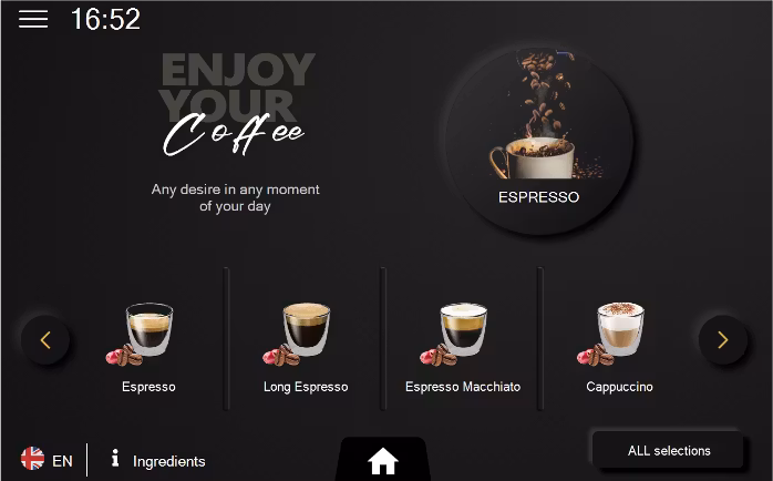 - Rostfri stålfinish på leveransutrymmet, koppgallret och koppstationen